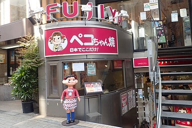 ここの不二家さんは日本で唯一「ペコちゃん焼き」が食べられる店として有名です。